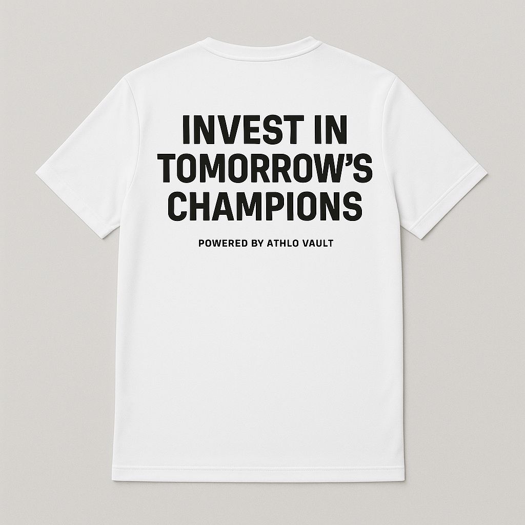 Stay sharp on and off the field with the official Athlo Vault Dry-Fit T-Shirt. Featuring our premium gold-and-black logo on the front chest and the bold message “Invest in Tomorrow’s Champions – Powered by Athlo Vault” on the back, this shirt blends purpose with performance. Made with lightweight, moisture-wicking dry-fit fabric, it keeps you cool, comfortable, and ready to move—whether you’re training, competing, or just repping the mission.